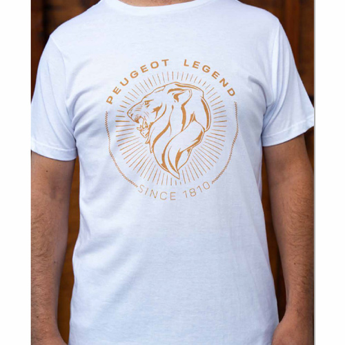 Remera manga corta, cuello redondo y calce clásico. Diseño en color blanco liso, o negro. Hecha en 100% algodón. Estampa delantera Peugeot Legend.